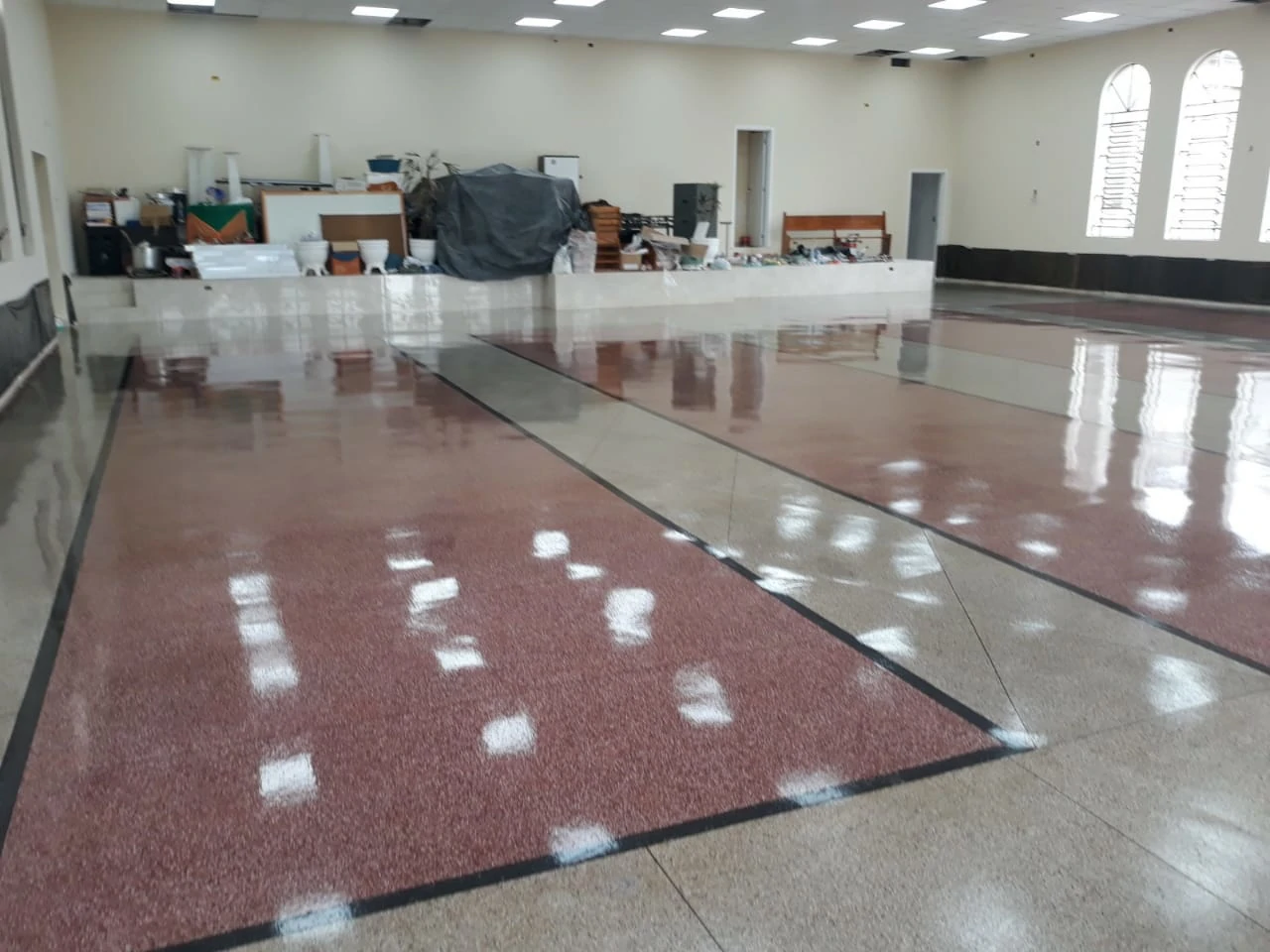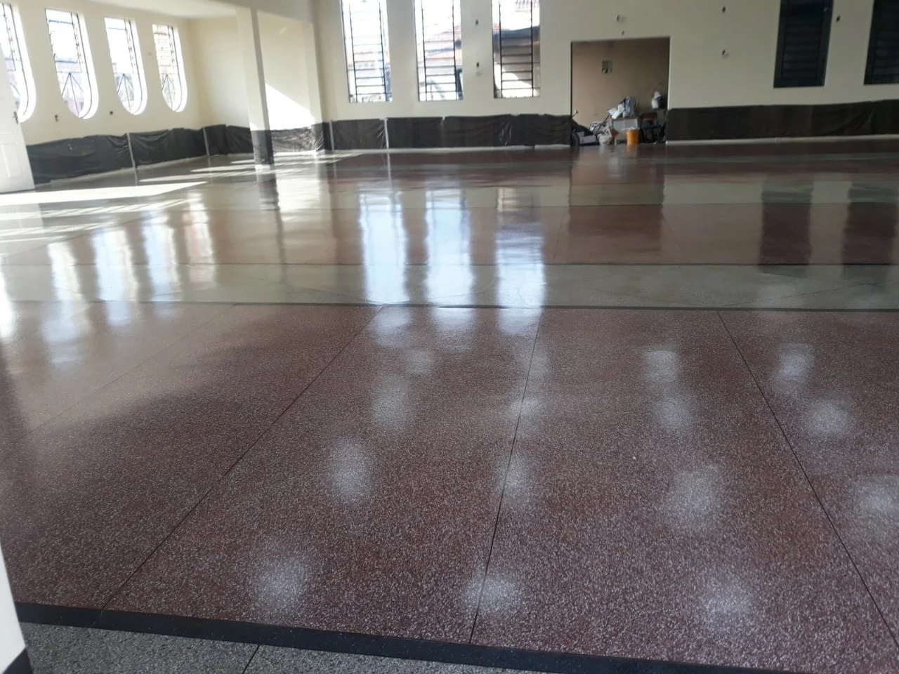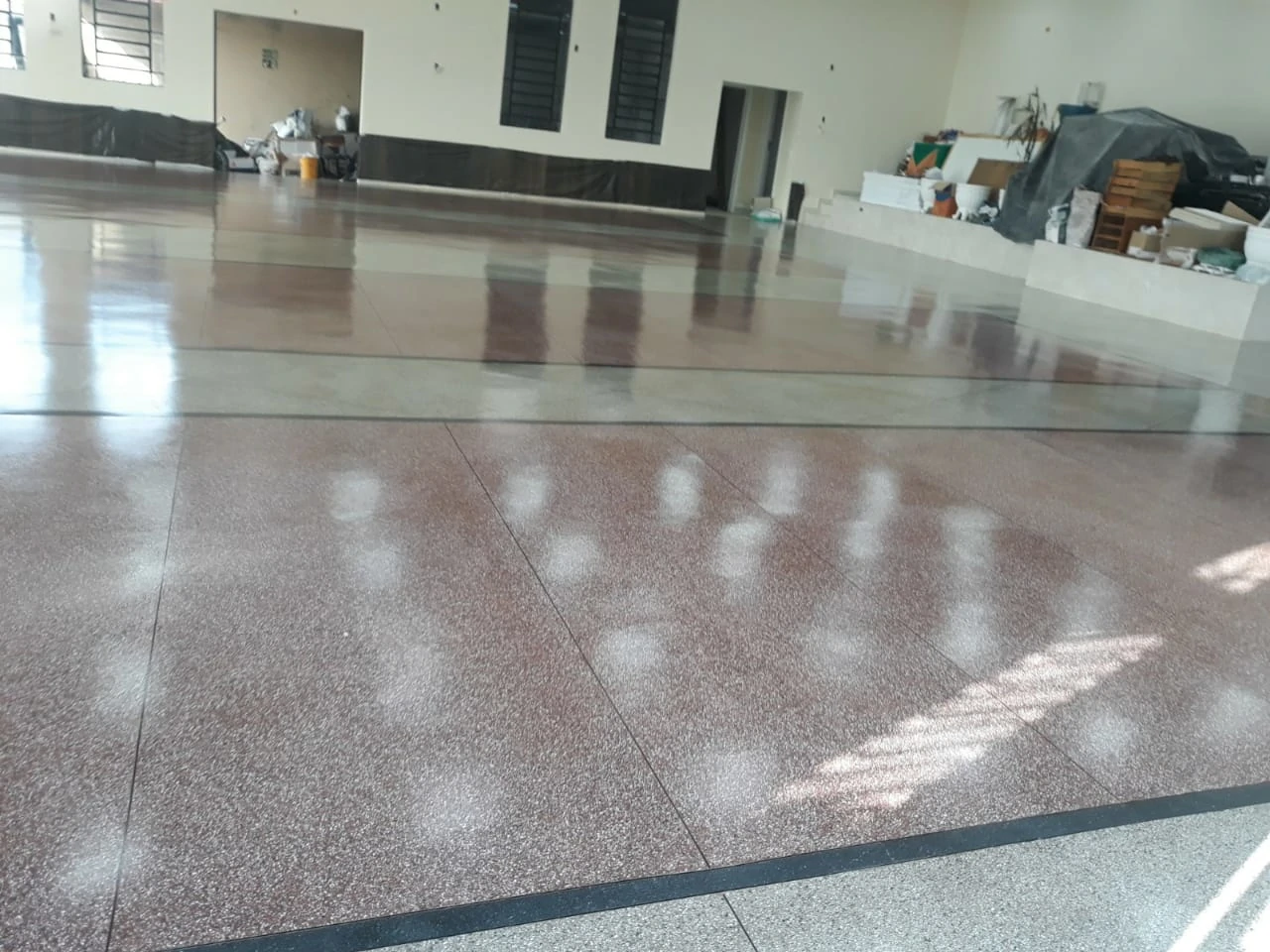 O polimento feito restaura o brilho natural da pedra, deixando-a com aspecto de nova. Quanto mais polimos, mais uniforme e com brilho o piso fica, e esse brilho é oriundo da própria pedra.