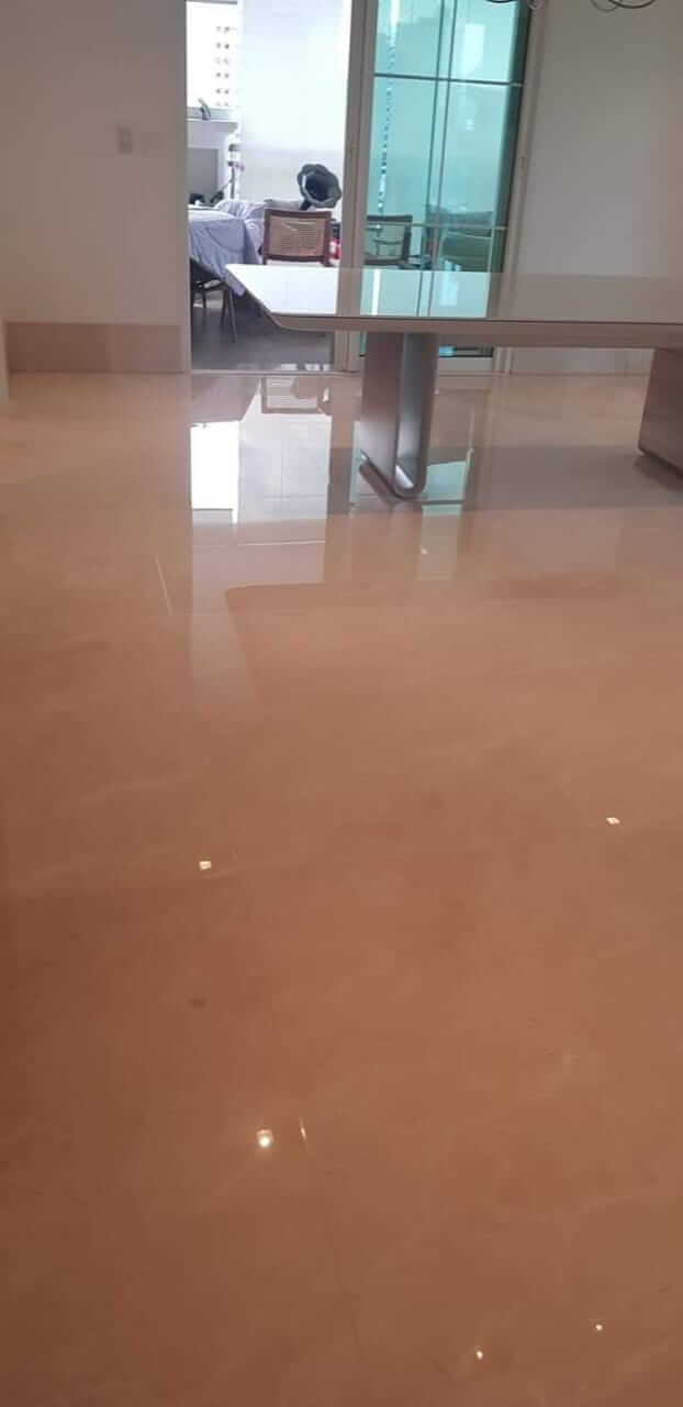 "Trabalho impecável! O mármore da minha sala estava fosco e cheio de riscos. O Pedro deixou com aspecto de novo, parece um espelho."